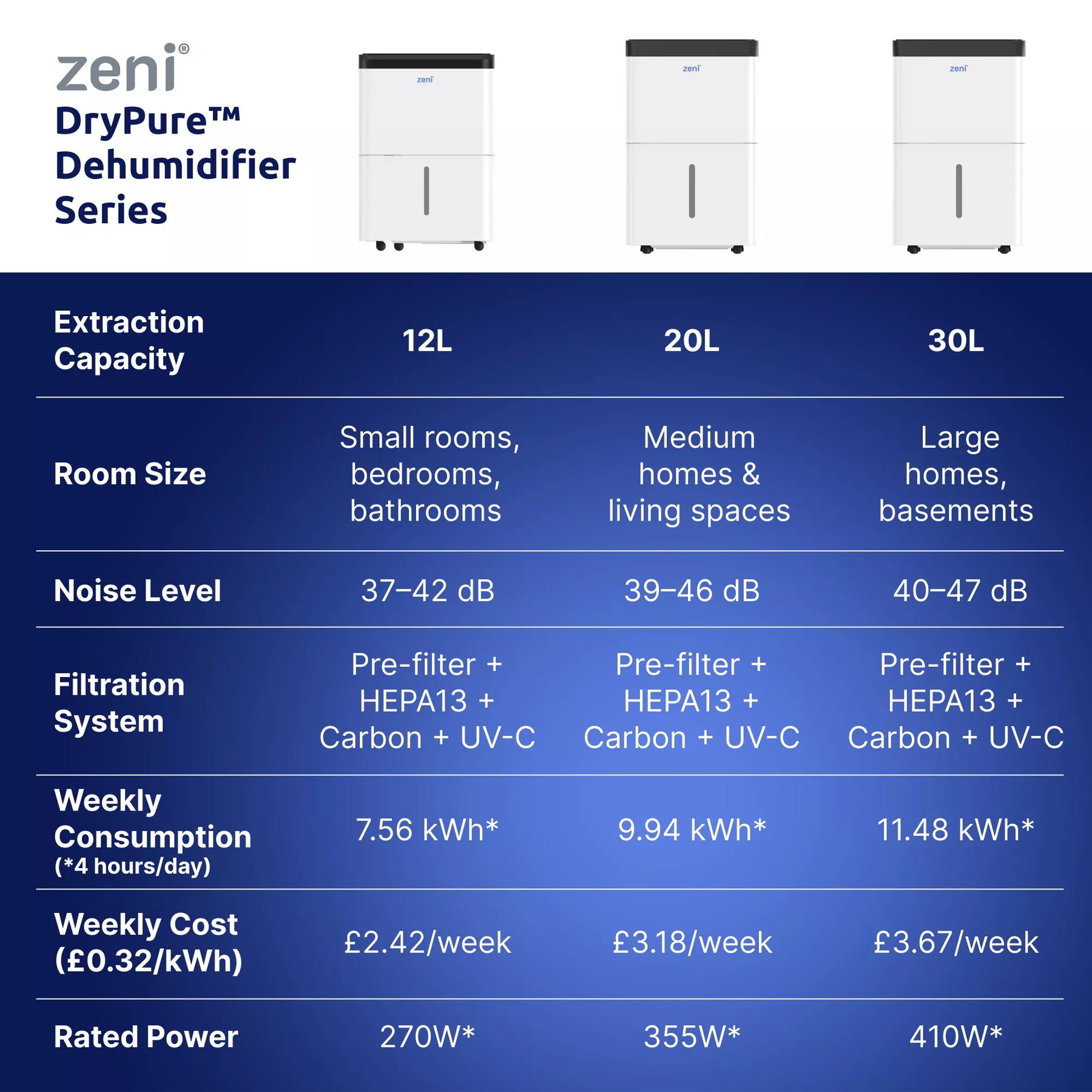 30L Daily Moisture Removal: Tackle severe damp, condensation, and mould through continuous high-capacity extraction.